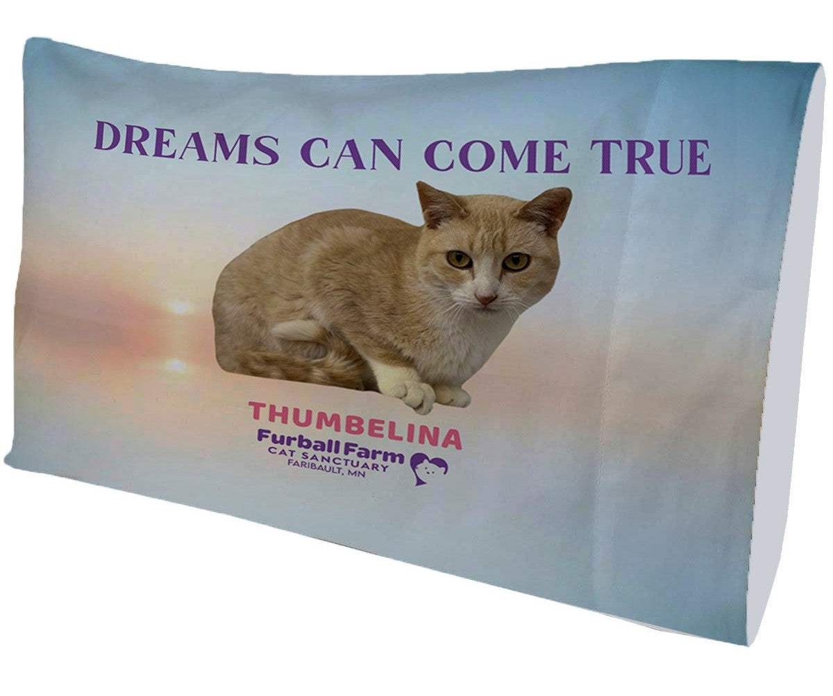 Add some feline-friendly fun to your bedroom with this Pillow Case featuring one of your favorite lovable cats from Furball Farm Cat Sanctuary. Snuggle up with Boris or Thumbelina and support a great cause! Sleep peacefully knowing you've made a difference.