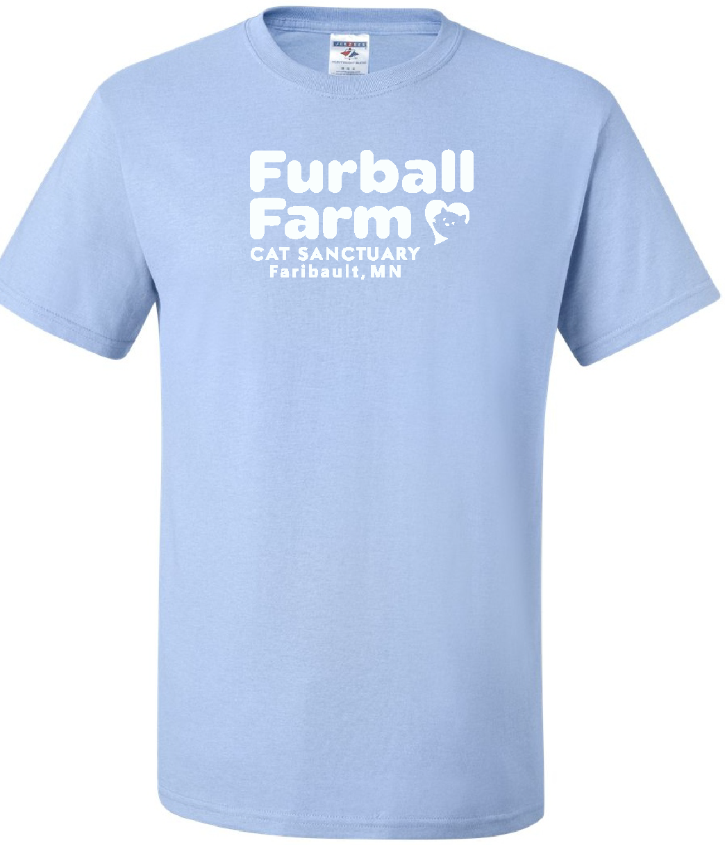 Show off your love for cats and support a good cause with our Unisex Printed T-Shirt! Featuring the adorable logo of Furball Farm Cat Sanctuary, this screen printed tee is a must-have for cat lovers. Comfortable and stylish, this t-shirt is perfect for any casual occasion. Join us in making a difference with your purchase!